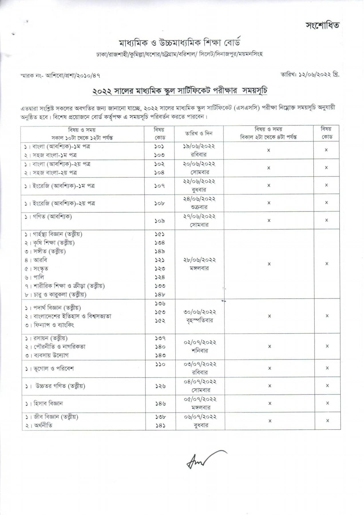ঢাকা শিক্ষা বোর্ডের পরীক্ষা নিয়ন্ত্রক অধ্যাপক এস এম আমিরুল ইসলাম স্বাক্ষরিত সংশোধিত রুটিন প্রকাশ করা হয়েছে।