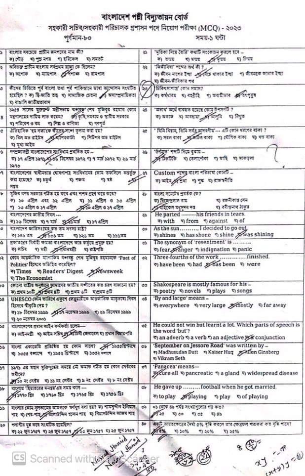 বাংলাদেশ পল্লী বিদ্যুতায়ন বোর্ড (বিআরইবি) এর সহকারী পরিচালক পদে ২০ জানুয়ারি ২০২৩ তারিখে অনুষ্ঠিত নিয়োগ পরীক্ষার প্রশ্ন: